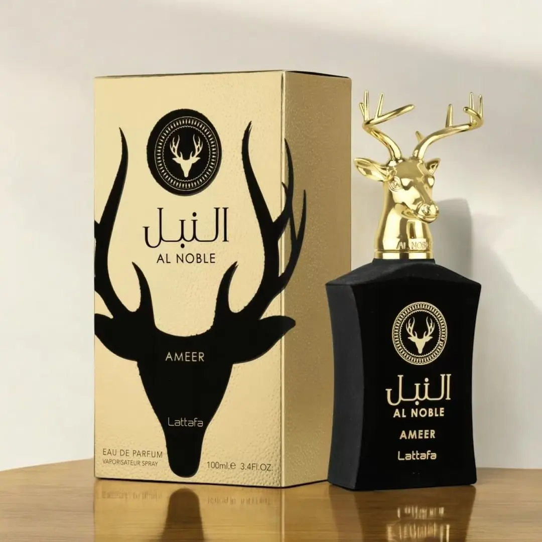? Inspiración: Inspirado en perfumes nicho de alta gama que combinan oud, azafrán y notas dulces con un aura magnética y exótica. Al Noble Ameer es sinónimo de autoridad, distinción y misterio. ? Notas olfativas: